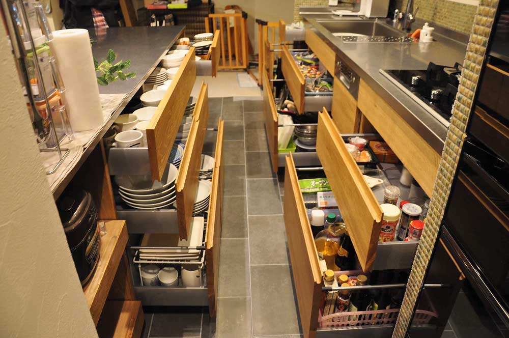 千葉県S様、ありがとうございました。マンションのリノベーション工事の際にオーダー下さいました。2型キッチンのように見える対面カウンターありのキッチン。220cm x 75cmの対面カウンターにはスツールも家電も食器もたっぷり収納。壁付けキッチンはW2600、対面カウンターはW2200のサイズ。どちらとも奥行750サイズなのでたっぷり収納。カウンターチェアの収納場所、ゴミ箱の収納場所、電子レンジや炊飯器の置き場もしっかり確保して。