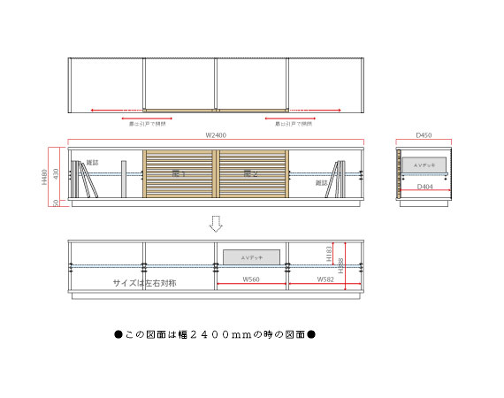 ルーバー扉のテレビボード、製作例は チェリー材 3m 大きなテレビボード