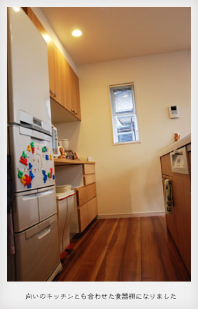 長野県上田市のM様へ、ハードメープルの造り付け食器棚を造作カウンター下に製作致しました。 新築時にカウンターをつけてもらったそうですが、コンセント配線の関係で ちょうどよいカウンター下の食器収納が無く、ツリーベのHPをご覧頂きオーダー下さりました。 コンセントの関係で、階段箪笥のようなおもしろい形の引出ししき食器棚となりました。