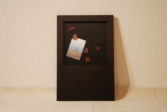 黒い枠に、ボード面も黒のマグネットボード。左右非対称のデザインです。