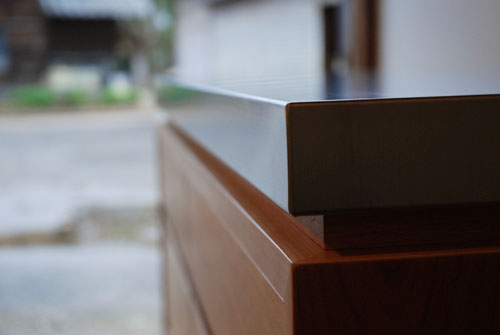 厚い天板のかたちとも良く似合って。細かいところのスキマも美しく仕上げました。